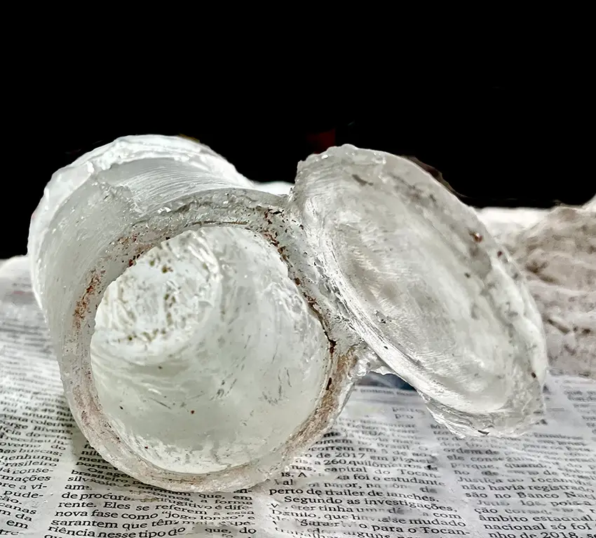 Marta Strambi, Passando a limpo, 2025, vidro, 14,5 x 7,5 x 8 cm.
