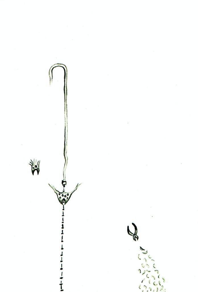 Bengala com alicate de unhas, 2001, nanquim sobre papel, 26,5 x 22 cm.
