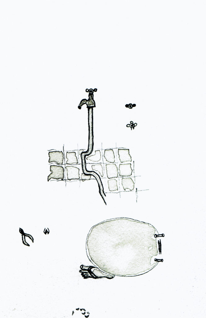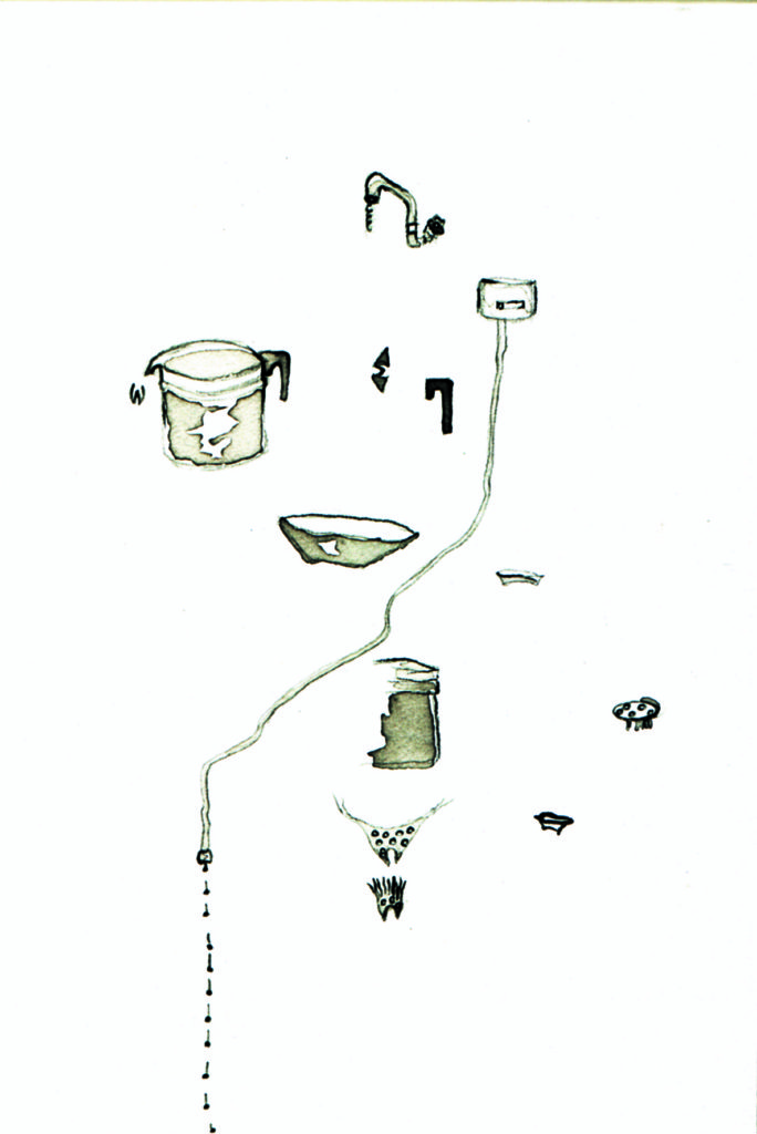 Vazamentos, 2001, nanquin sobre papel, 26,5 x 22 cm.