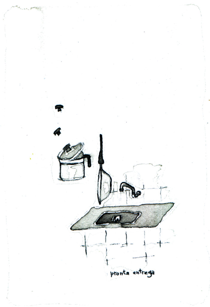 Pronta entrega com gordura, 2001, nanquim sobre papel, 26,5 x 22 cm.